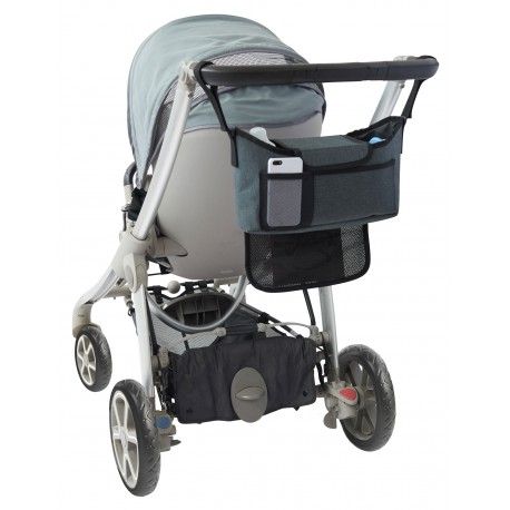 Keeps everything you need for baby within reach! Perfect to carry the essentials for a walk PRACTICAL : -2 front pockets for parents’ belongings -3 central compartments for baby’s belongings -Mesh pocket on the back Universal fitting with self-adhesive fastening